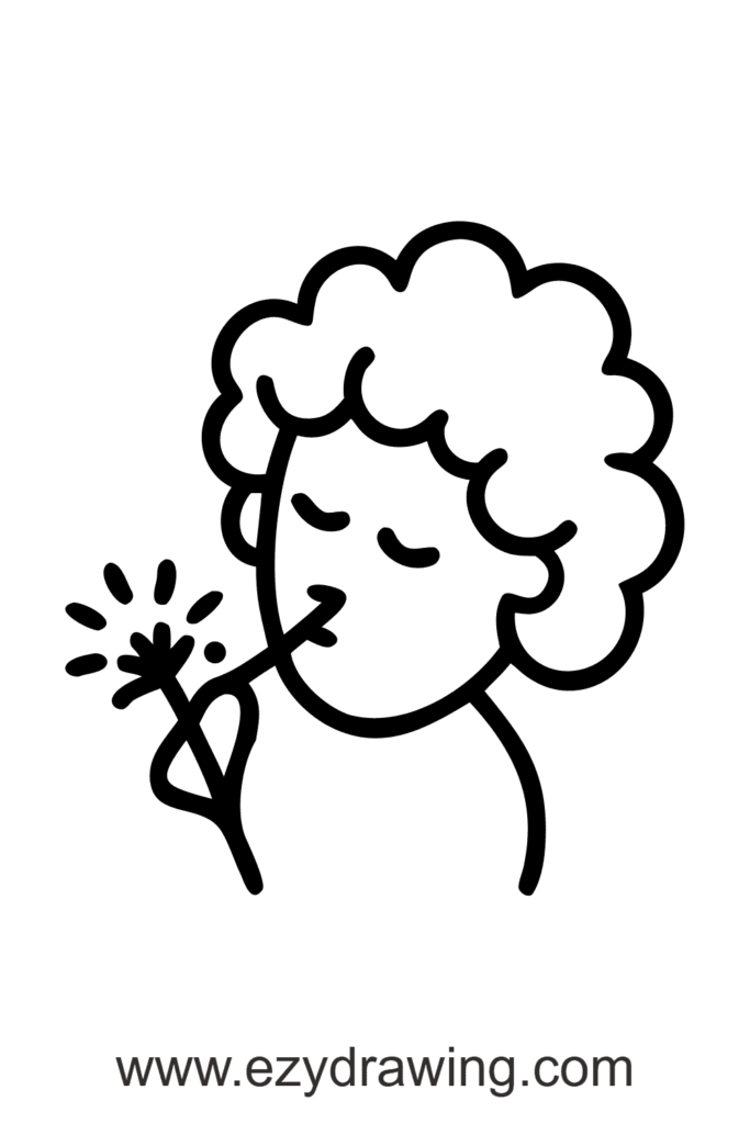 This is perhaps the most poetic and emotionally beautiful drawing on the entire list — a perfect wishing moment made even more magical by the way the curly hair becomes part of the scene itself. A deeply moving and gorgeous final curly hair drawing idea! 🌬️