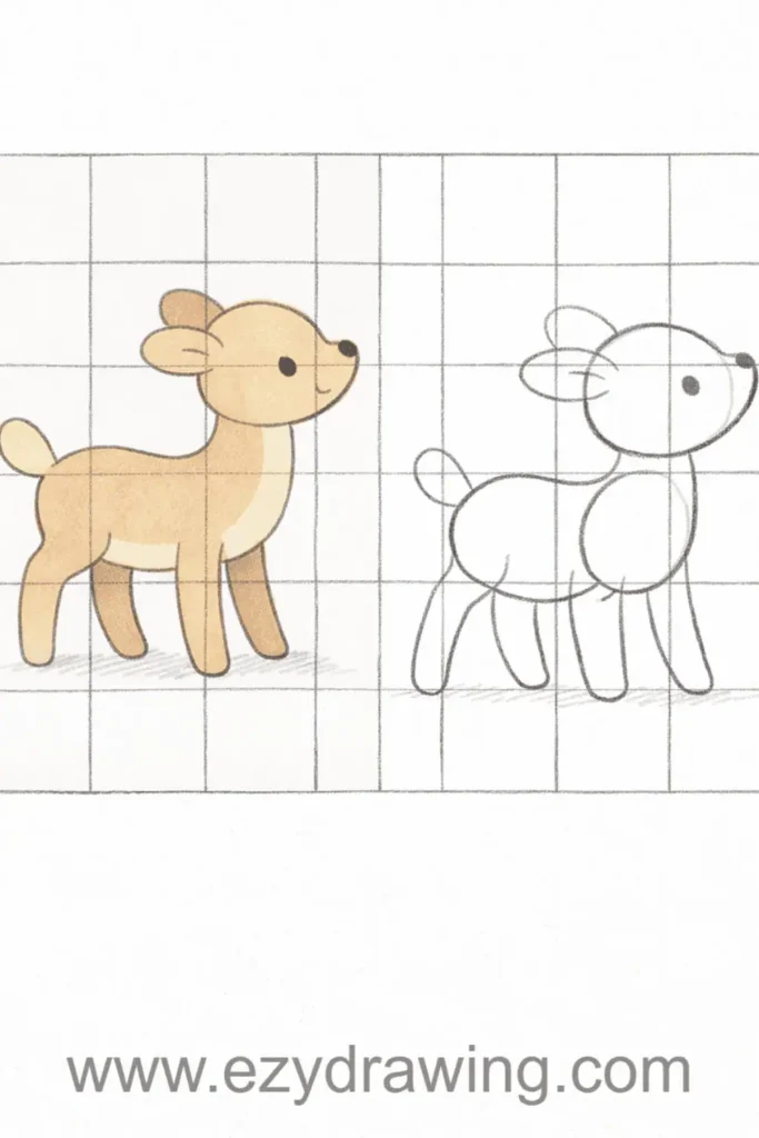 The grid method is perfect for achieving precise proportions in deer drawing. Divide your reference image and drawing paper into equal squares, then transfer what you see in each square.