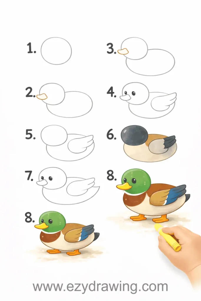 Looking for simple duck drawing ideas for kids that spark creativity? You’ve come to the right place. These easy tutorials help young artists build confidence while having fun, while gently introducing animal drawing through friendly shapes and simple steps.