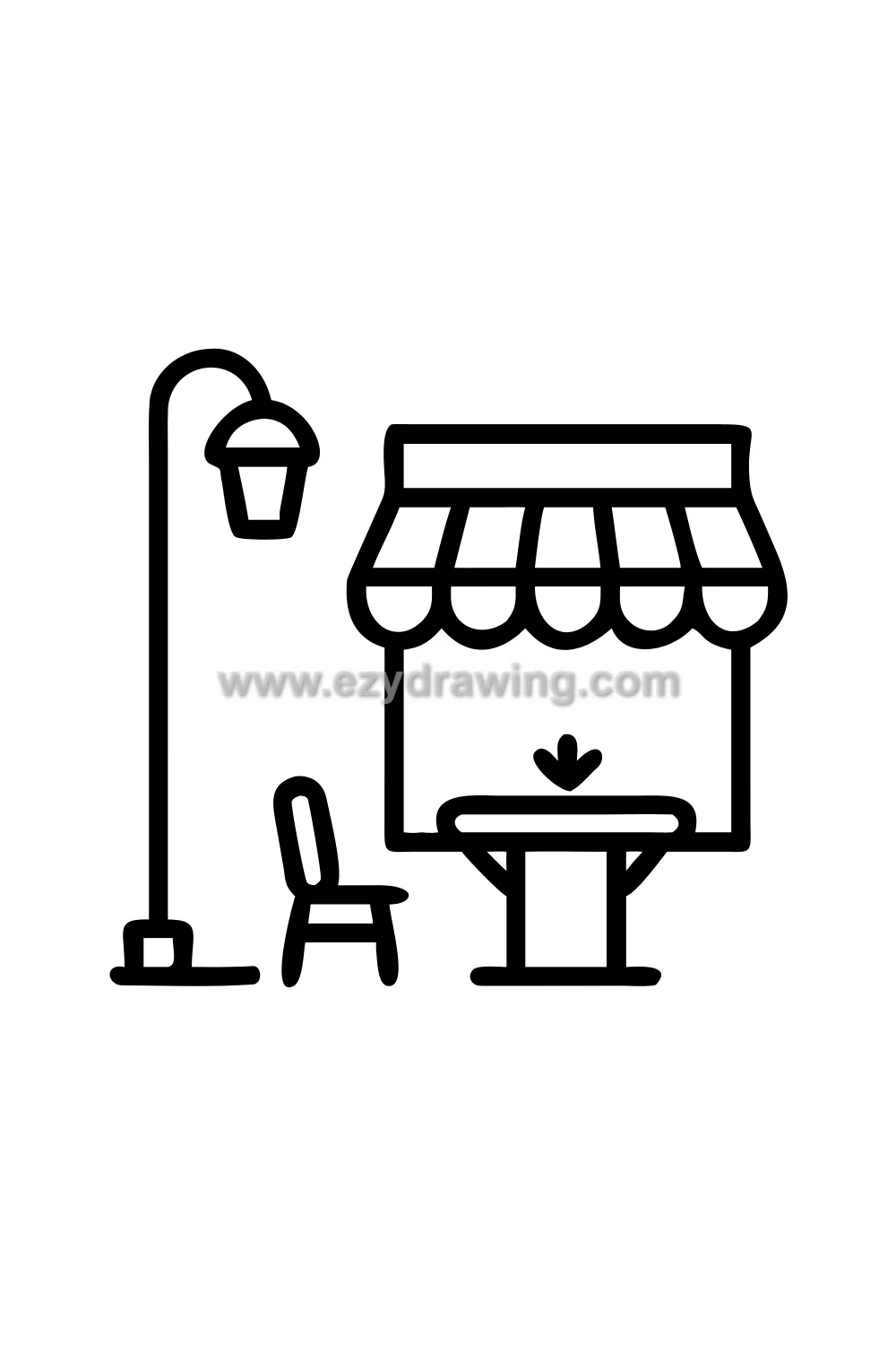This drawing captures the most romantic and beloved quality of European street architecture. A wonderfully charming architecture drawing idea! ☕