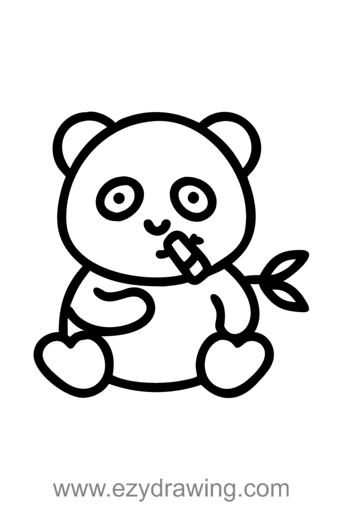 This drawing has a happy, peaceful mood celebrating pandas’ famous bamboo-eating behavior. The calm scene also supports turtle drawing, as the clear black and white pattern helps practice color blocking, contrast, and steady shapes similar to drawing shells and gentle animal forms.