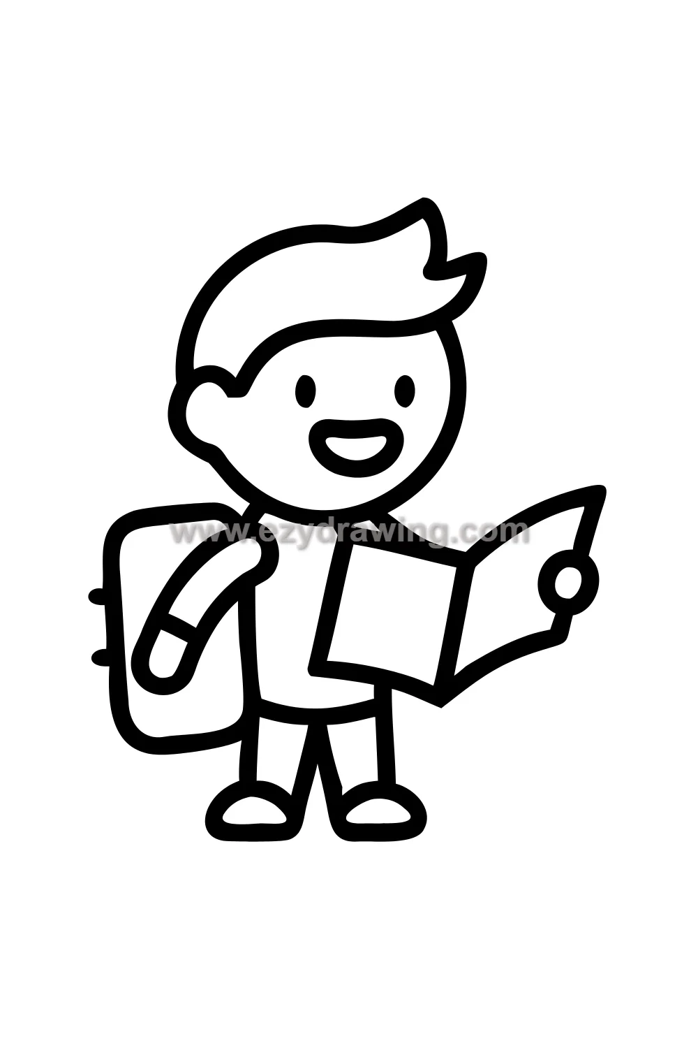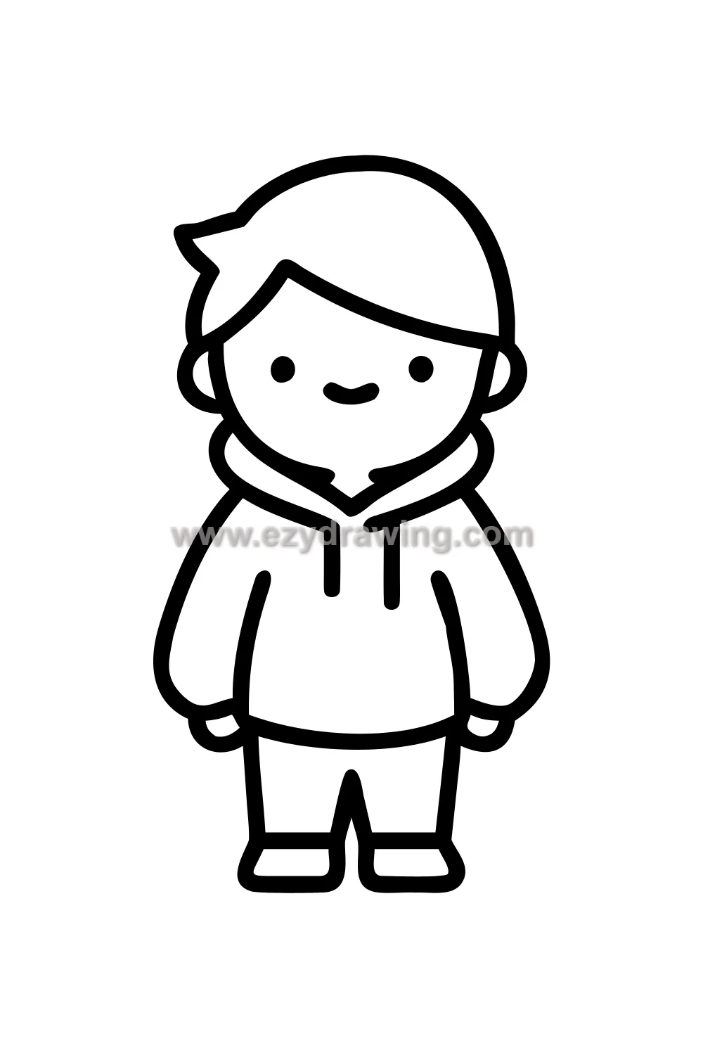 This character is the perfect starting boy drawing because his simplicity and relatability make him immediately appealing to draw and to look at. An essential boy drawing idea! 🧥