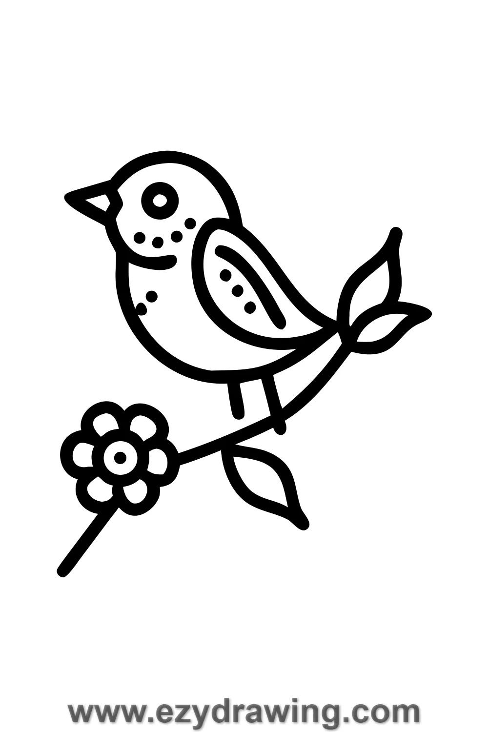 Finish with decorative dot details on the wing and around the branch. This cute Chicano drawing is simple to start but looks beautifully detailed when finished. 🐦🌸✏️