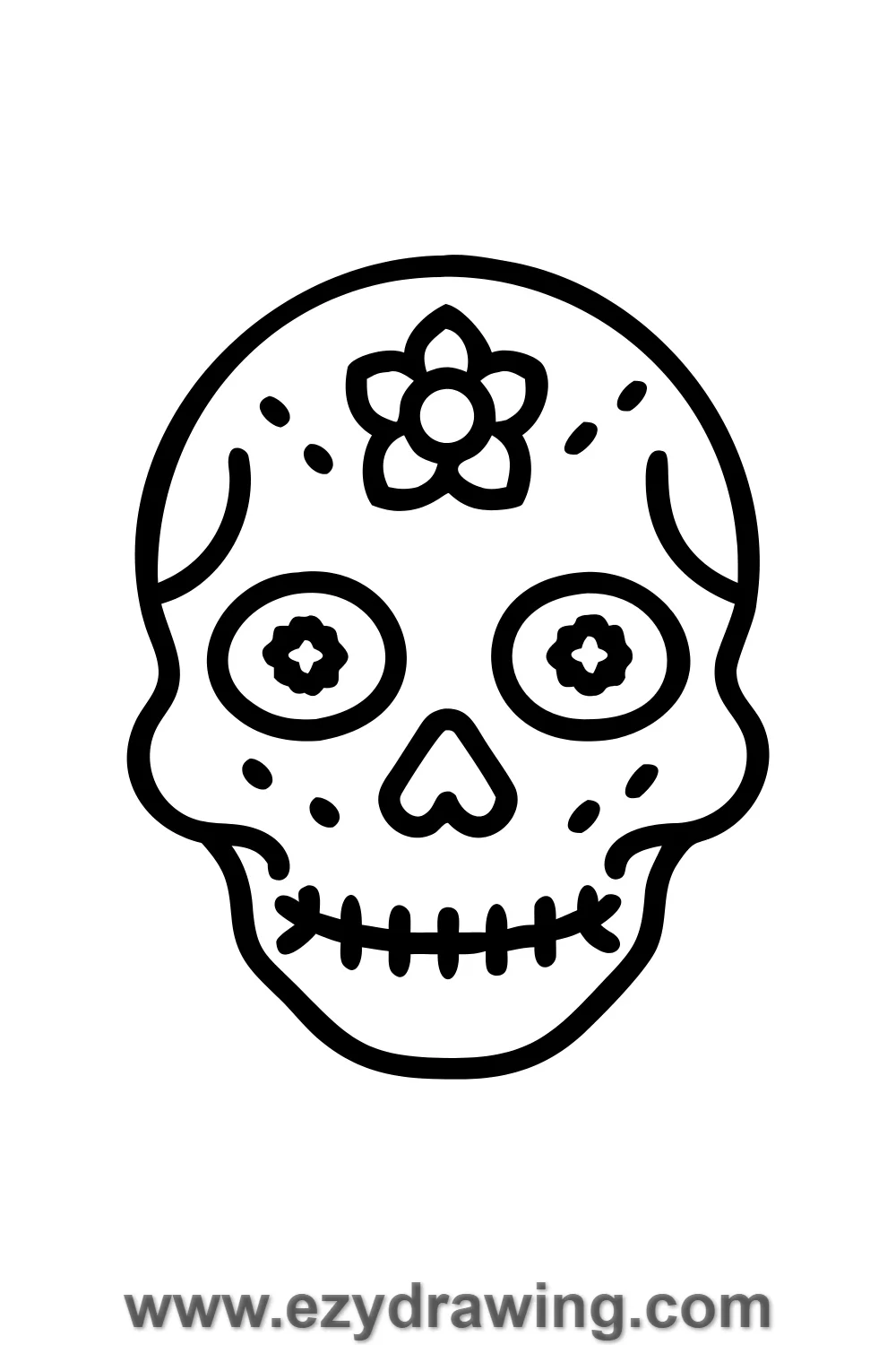 The sugar skull is one of the most beautiful Chicano drawing ideas for beginners. It combines bold shapes with detailed decorative patterns. Start by drawing a basic oval skull shape with a wide forehead.
