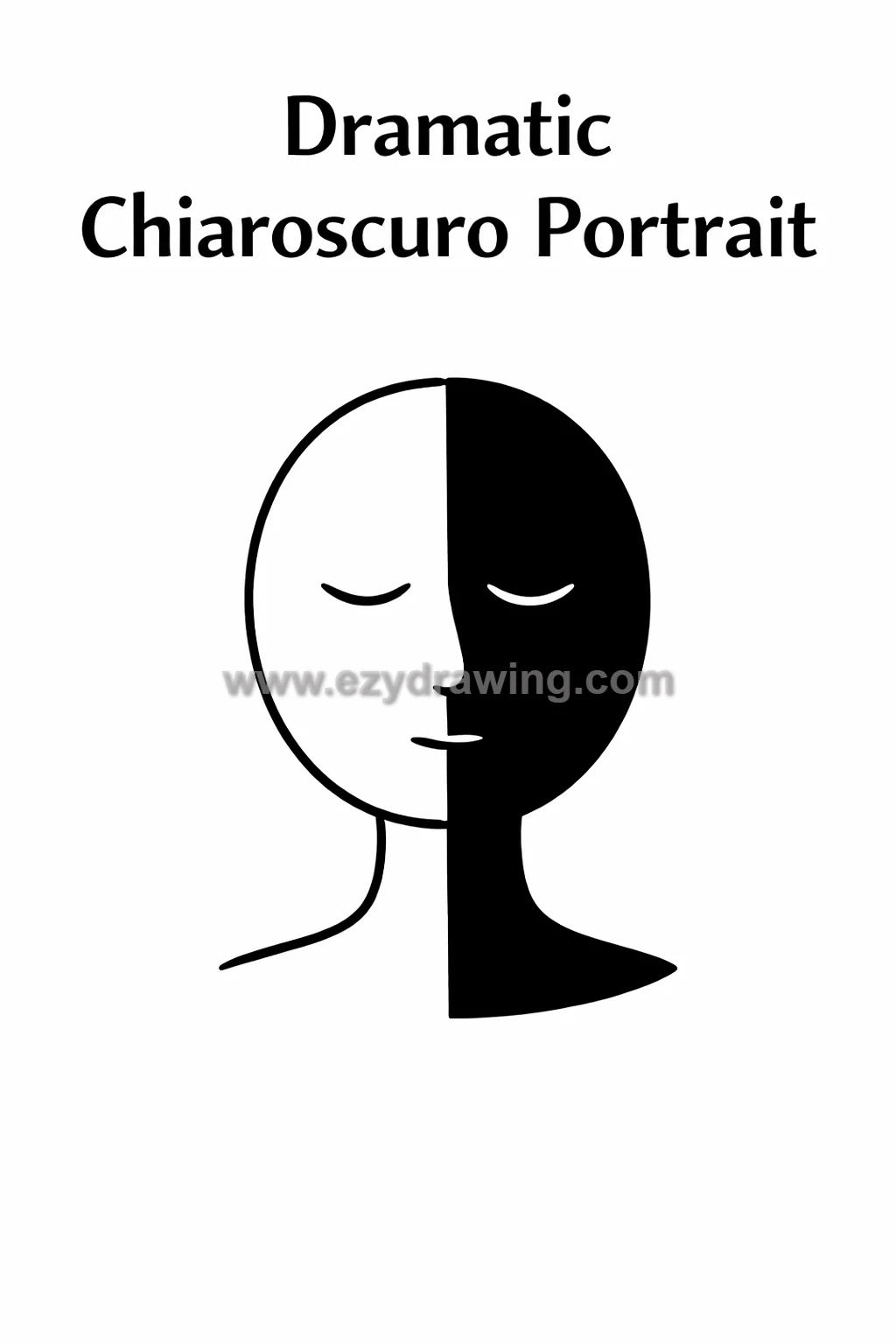 Chiaroscuro is the Italian term for the technique of using strong contrasts between light and dark — it was mastered by Caravaggio and Rembrandt and remains one of the most powerfully atmospheric approaches to portrait drawing. The key is committing fully to the darkness — the shadow areas must be genuinely dark rather than medium grey for the contrast to produce its maximum dramatic impact.