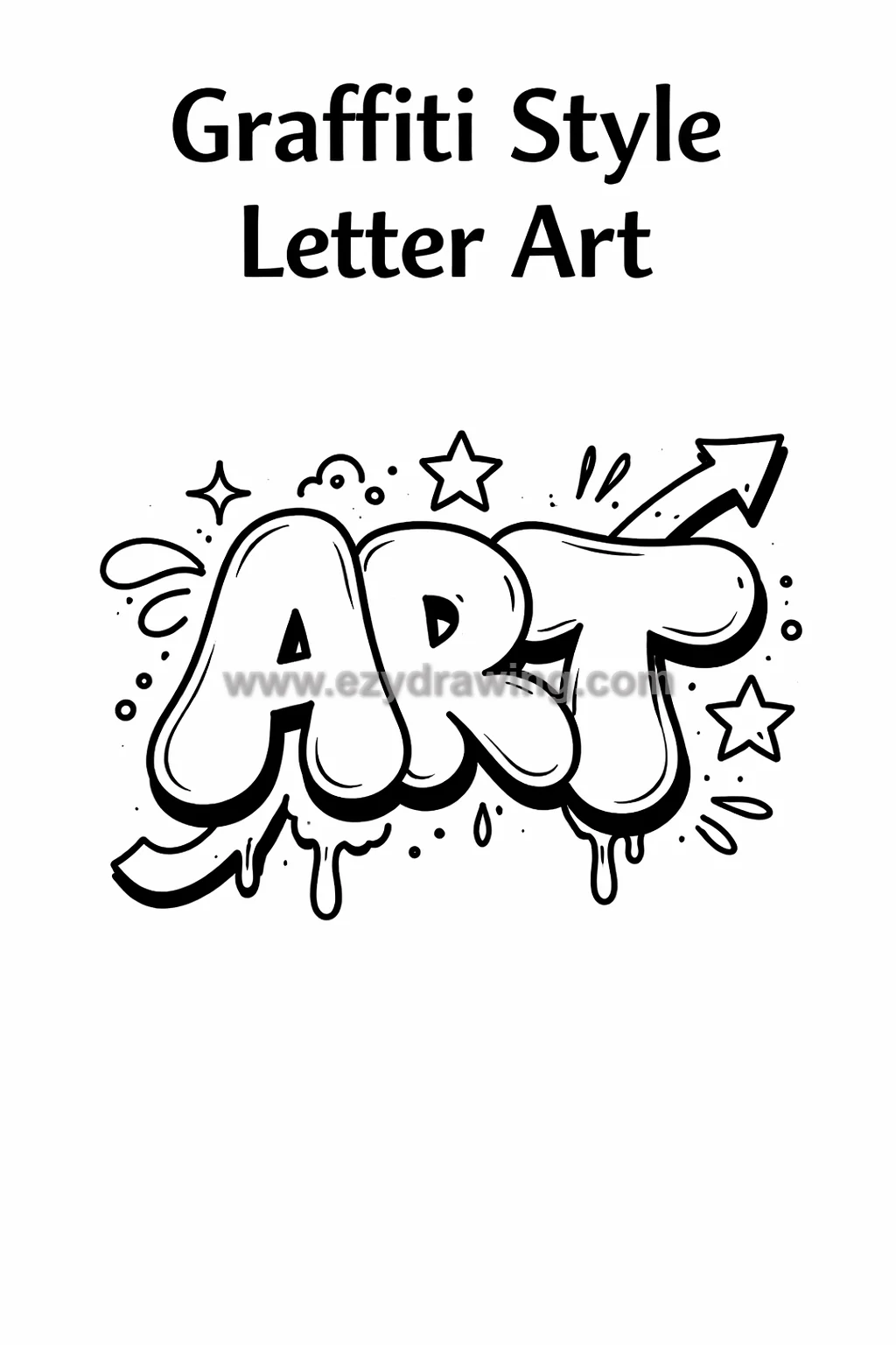 This drawing teaches lettering as art and brings street art energy into any sketchbook. A boldly cool art drawing idea! 🎨