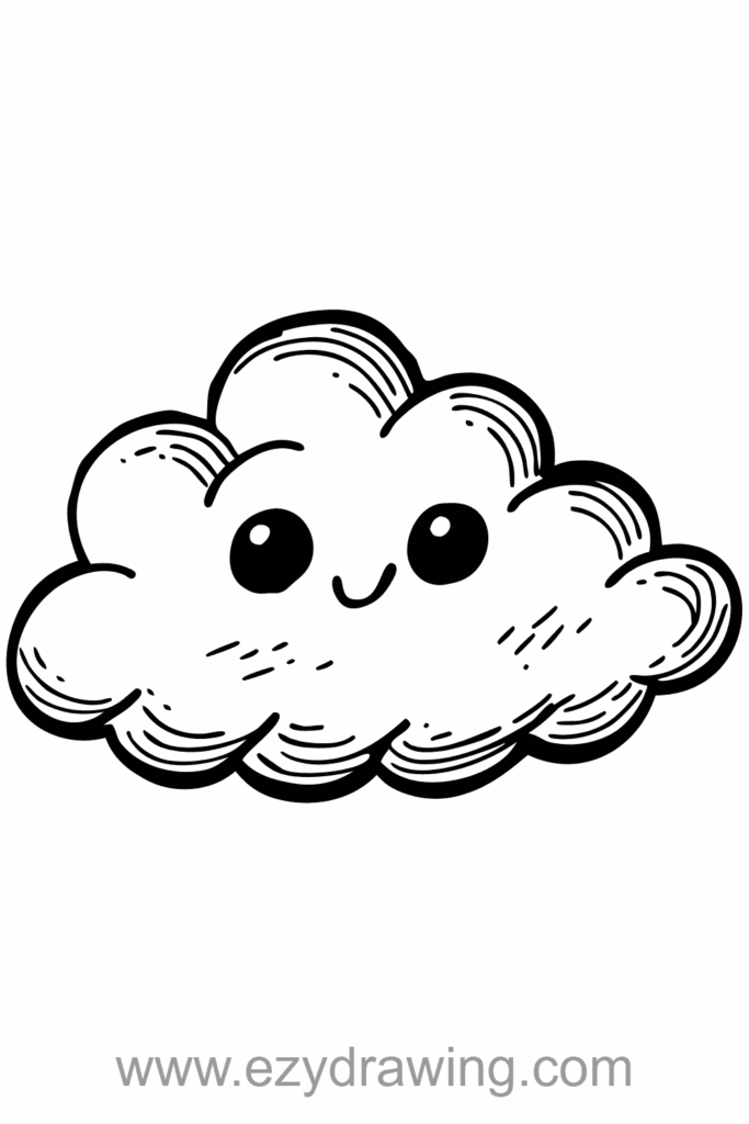 Draw a fluffy cloud with an adorable face to add a soft and playful touch to your doodles. This simple design uses connected curves to form a puffy, lightweight shape that feels calm and friendly. It is perfect for weather themed doodles, sky scenes, or filling empty spaces on a page.