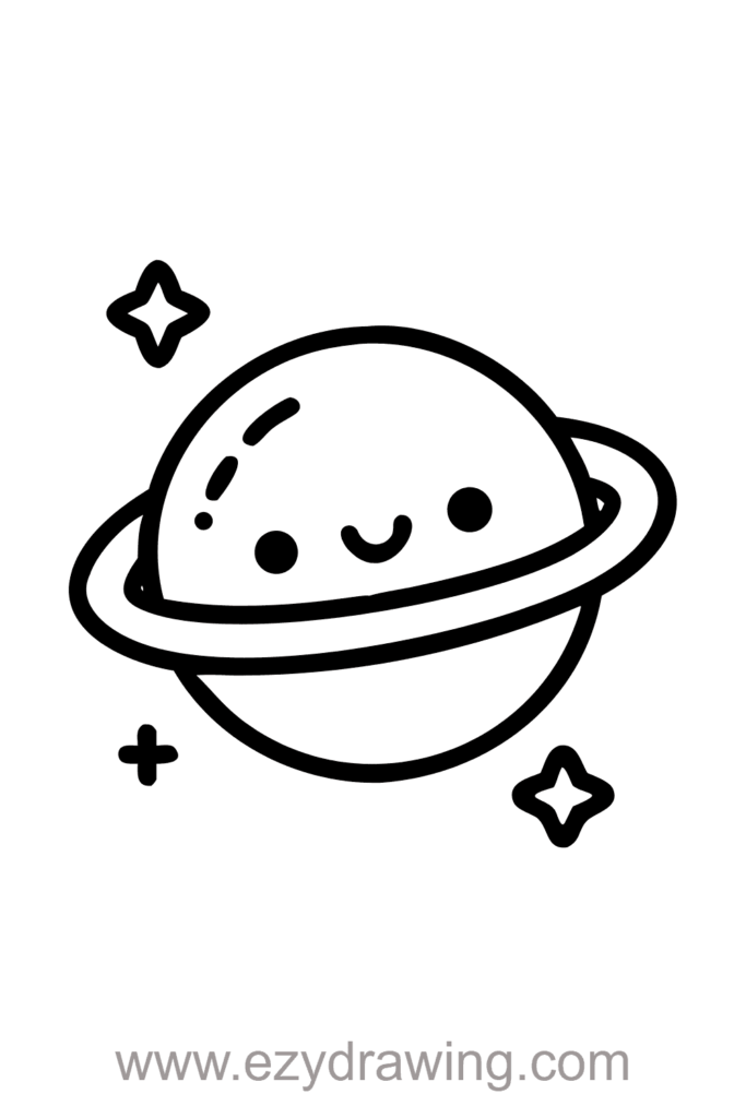 Illustrate an adorable planet complete with rings and a smiling face. This celestial doodle brings outer space charm to your pages with minimal effort.