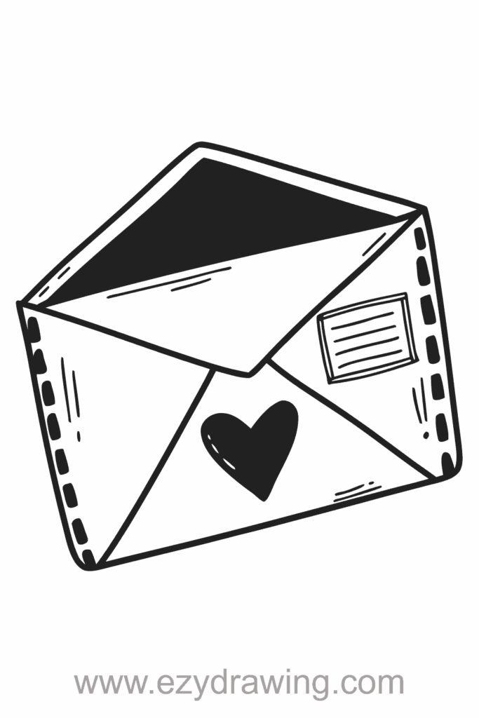 Draw a sweet envelope sealed with love. This simple doodle is perfect for Valentine’s themes, letter-writing motifs, or adding a touch of correspondence charm to your pages.