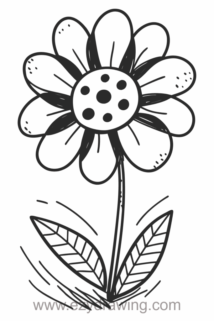 Draw a classic flower doodle using simple shapes to create a cheerful and timeless design. Easy petals make this drawing beginner friendly and quick to sketch. It works beautifully for floral borders, small garden scenes, or decorative accents.