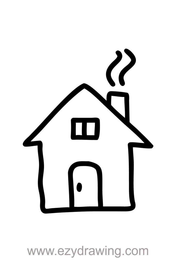 Illustrate a cozy little house using basic geometric shapes. This simple architectural doodle creates a sense of home and comfort with just a few lines.