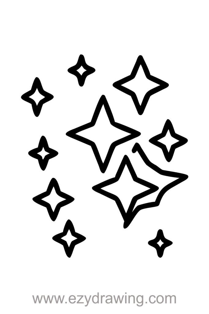 Illustrate a constellation of various star shapes to add a magical, celestial touch to your doodles. Mixing small and large stars creates visual balance and interest. These sparkle symbols work beautifully as accents around other drawings.