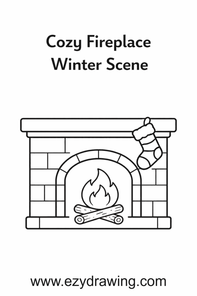 This drawing is the visual equivalent of wrapping yourself in a blanket — warm, safe, and deeply comforting. One of the coziest and most satisfying fire drawing ideas on the entire list! 🧦
