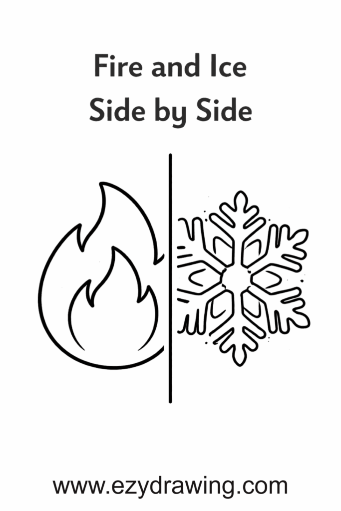 This drawing explores the beautiful concept of elemental opposites and makes a wonderful study in contrasting color palettes and shape styles. A creative and visually striking fire drawing idea! ❄️