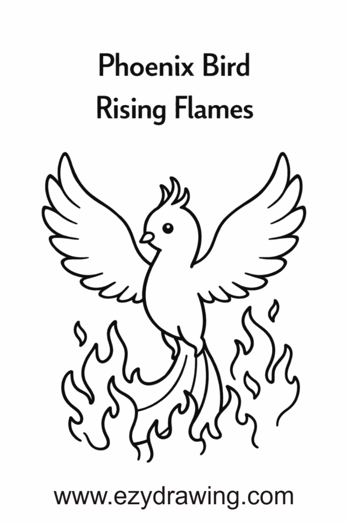 This drawing is breathtakingly beautiful and more achievable than it looks — it’s essentially overlapping flame shapes arranged into a bird silhouette. One of the most dramatic and stunning fire drawing ideas! 🦅