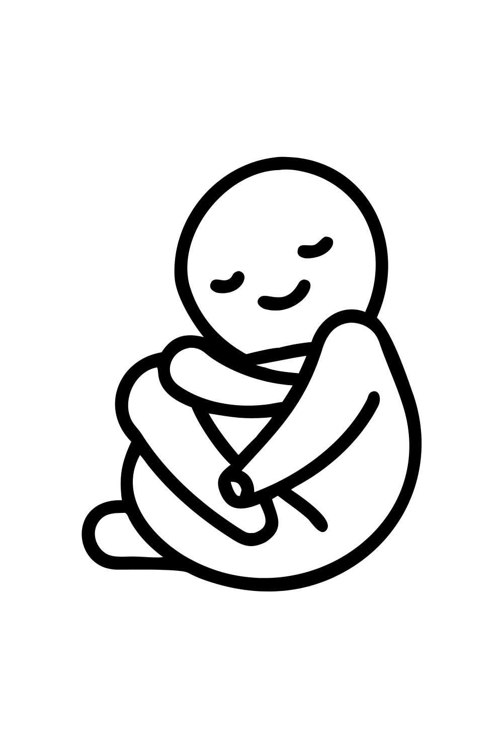 Draw the figure seated with the spine curving gently forward. Pull both knees up toward the chest and wrap the arms around them in a tight comfortable hug.