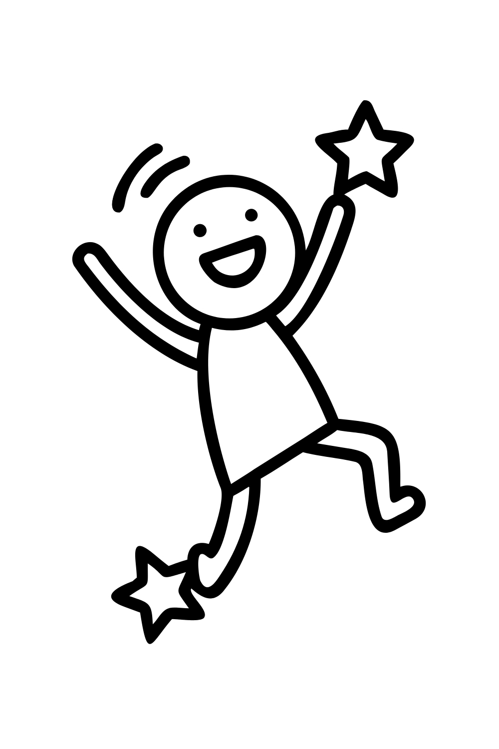 Give the face a massive open-mouthed happy smile with sparkling eyes. This cute gesture drawing is pure joy captured in one explosive energetic pose. 🎉🦘⭐