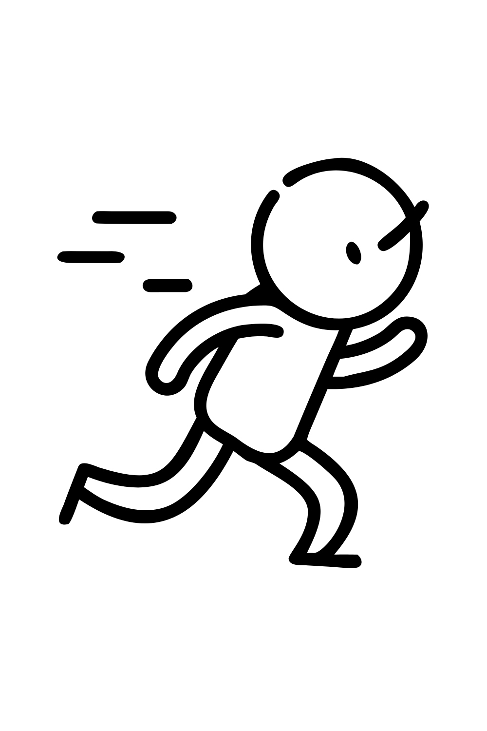 Draw one leg lunging forward with the knee bent and the other leg pushing off behind. Add both arms bent at the elbow and pumping in opposite directions to the legs.