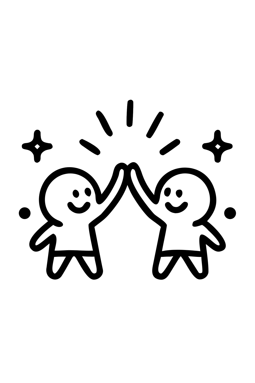 This two-figure composition is the most celebratory gesture drawing idea on the entire list. It captures friendship, teamwork, and shared joy in one single powerful moment. Draw two figures facing each other with a small gap between them.