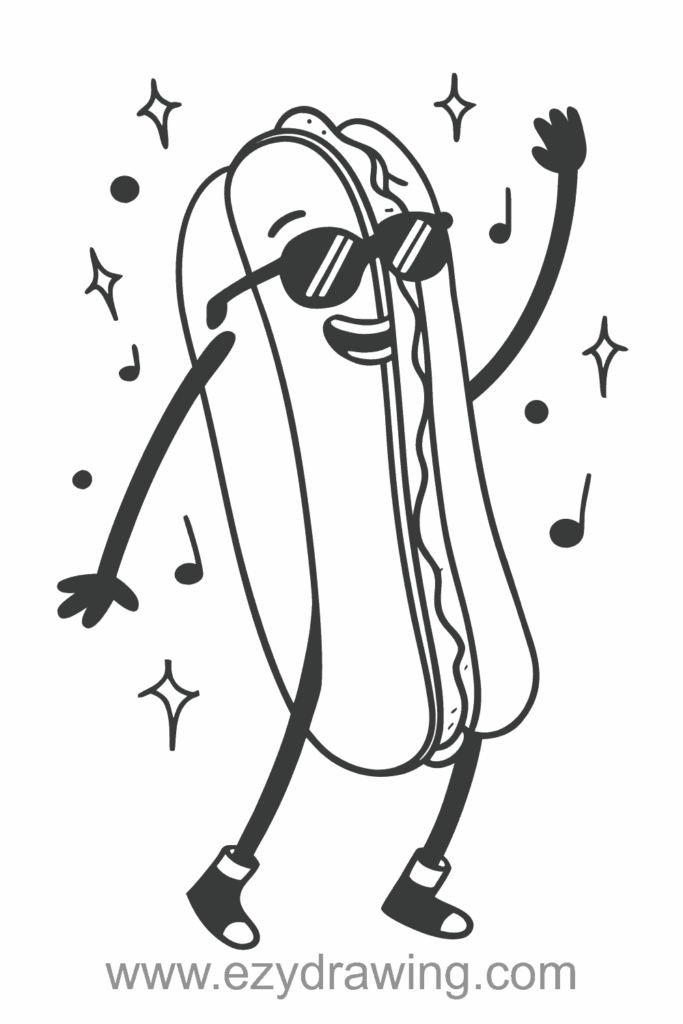 Add classic details like a squiggle of ketchup and mustard, plus cute sneakers to boost the character vibe. For an extra twist, include a tiny wig or funky strands on top so you can sneak in some playful hair drawing practice without making it complicated.