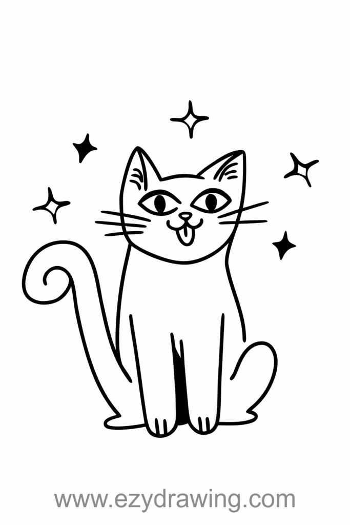 You can turn it into a fun portrait drawing by focusing mostly on the face, eyes, and expressions rather than the full body. Keep the lines simple, rounded, and playful so it stays cute and easy to copy. This adorably confused cat becomes a lovable character that makes your sketchbook feel brighter.