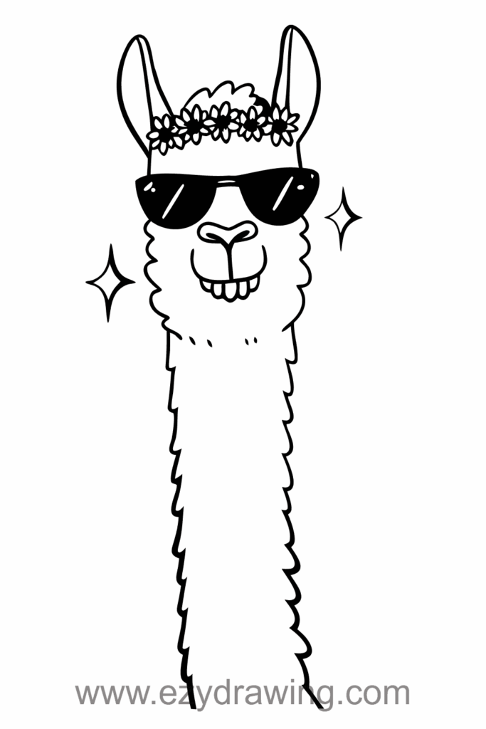 Keep the body shapes soft and cartoon-like so it stays cute, easy, and full of personality. This stylish llama’s confident silliness will feel instantly infectious and guaranteed to make anyone laugh