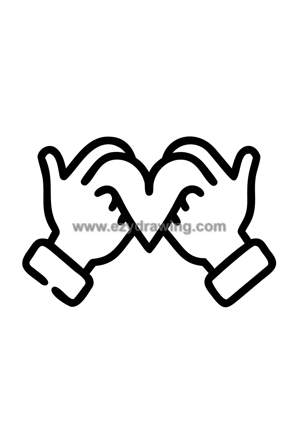 The hand heart drawing requires careful attention to the finger positioning — the thumbs form the lower V of the heart with their first knuckle touching, and the index fingers each curve upward and outward before meeting at the tip to form the two upper bumps of the heart. The other fingers fold naturally behind, out of the way of the heart shape. Getting this positioning right makes the gesture immediately recognizable.