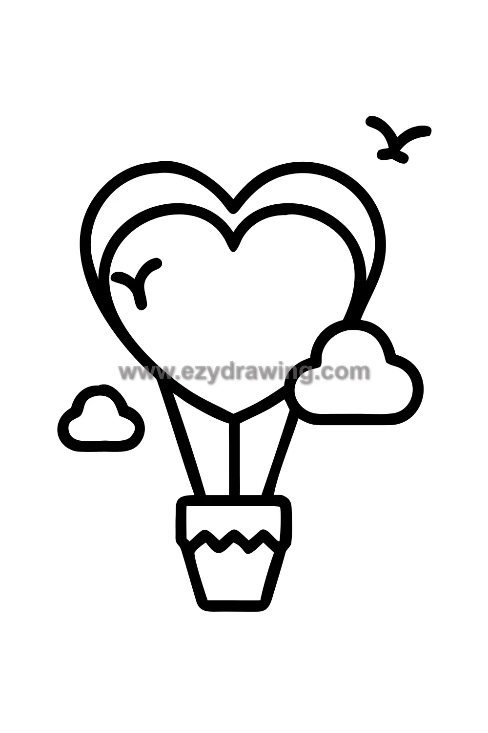 This drawing combines the romance of flight with the symbolism of the heart in the most delightful way. A wonderfully whimsical easy love drawing idea! 🎈