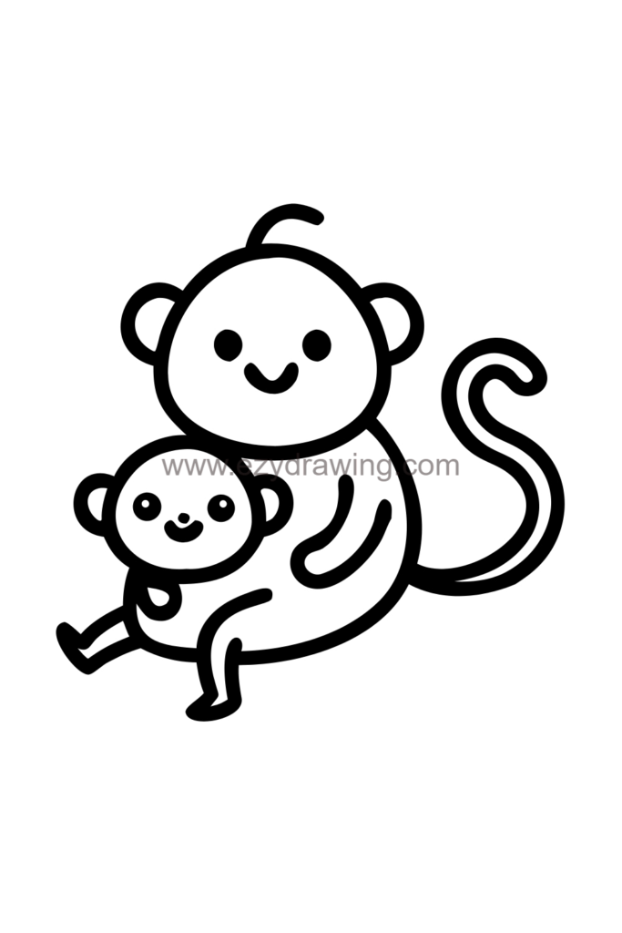 - Don’t worry about making every detail perfect – monkeys are naturally playful and energetic, so slightly messy lines add to their wild charm!
