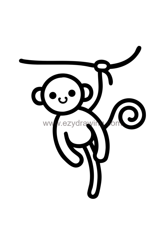 This drawing has an energetic, playful mood perfect for jungle themes and showing monkeys in their natural element. The hanging pose provides excellent practice for drawing animals in dynamic suspended positions and understanding primate anatomy, while also building foundational skills that can support other creative projects like dinosaur drawing.