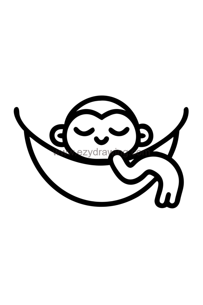 This drawing has a calm, relaxing mood perfect for rest themes and showing monkeys at peace. The hammock position provides excellent practice for drawing curved resting spaces and subjects in suspended comfortable positions.