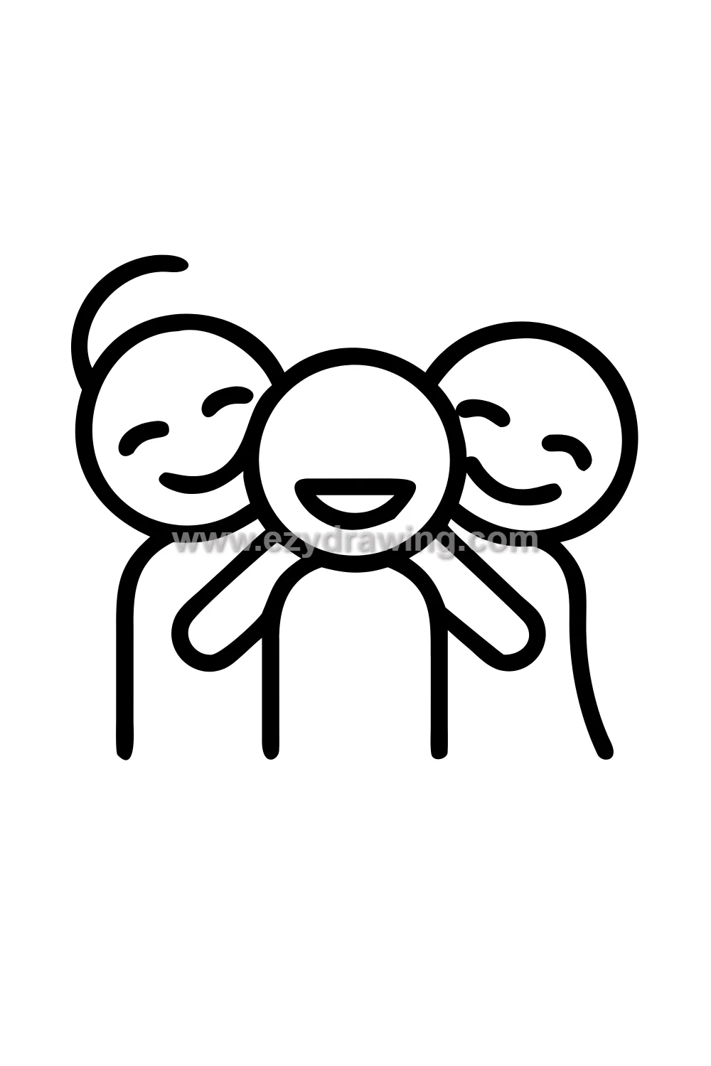 The group laughter composition is wonderful because shared laughter creates natural physical proximity — people lean toward each other, grab each other’s arms, fall against each other’s shoulders. This physical closeness of the laughing group creates a unified composition where the figures overlap and support each other both emotionally and physically in the drawing.