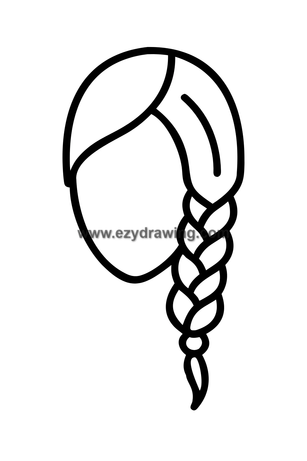 The braid pattern from the side is drawn as a series of diagonal overlapping shapes — each section of the braid is a roughly rectangular form that crosses over its neighbor, creating the characteristic woven texture. Seen from the side, the braid forms a beautiful rope-like silhouette that is both complex-looking and surprisingly achievable with practice.