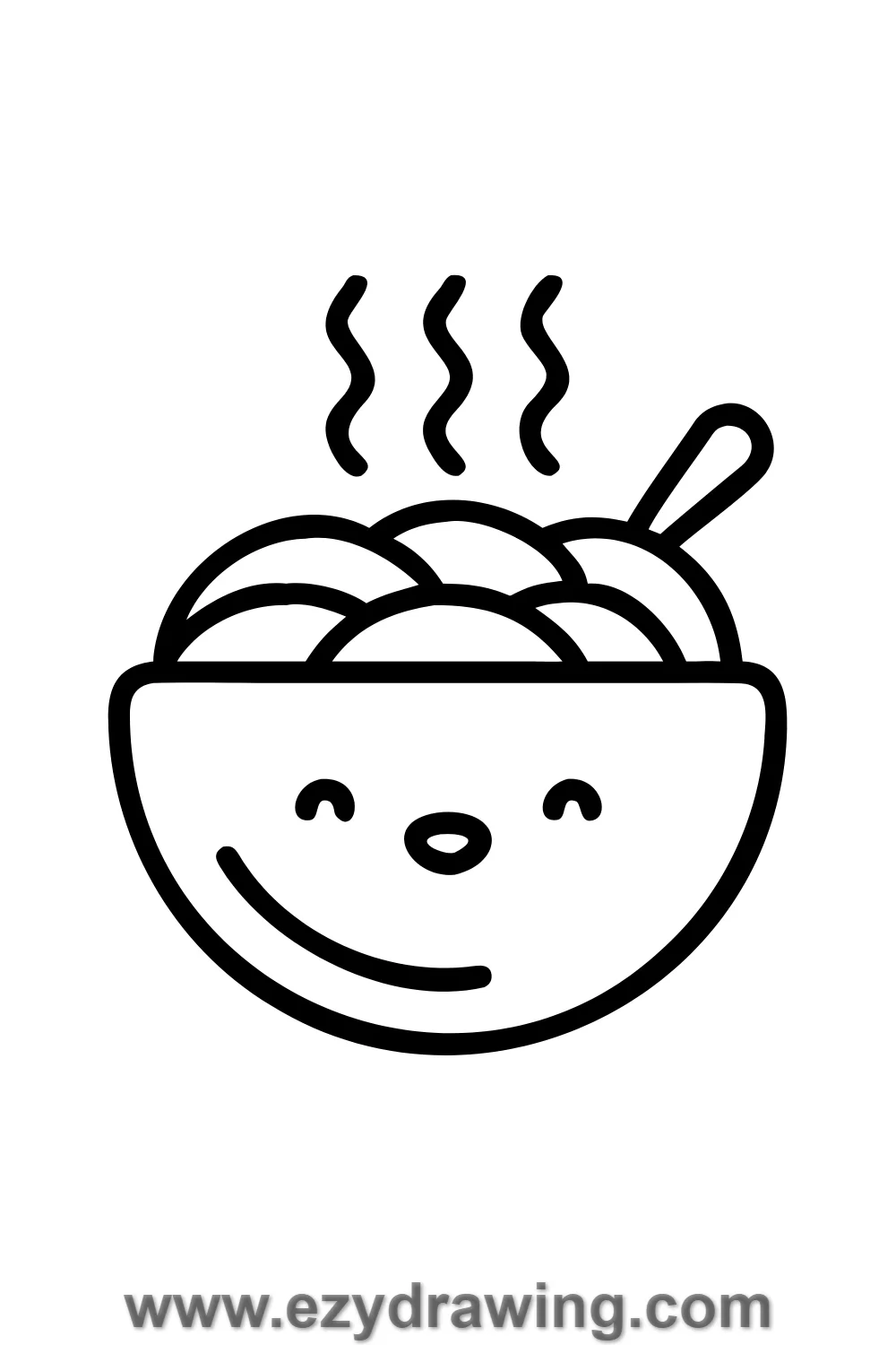 Draw two or three steam wisps rising above the hot soup.