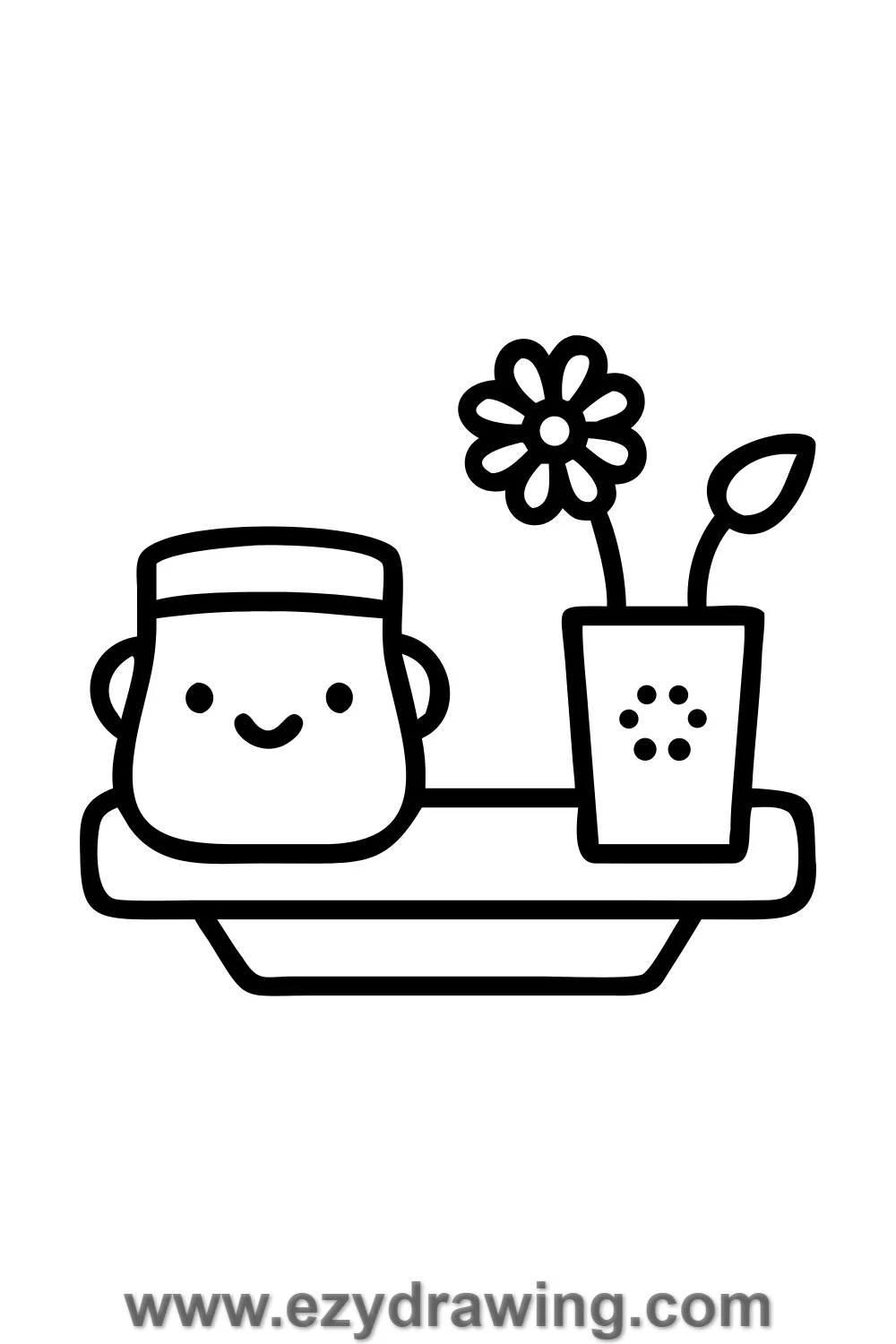 This cute still life drawing is great for practicing curved lines and patterns. ☕🌸💛