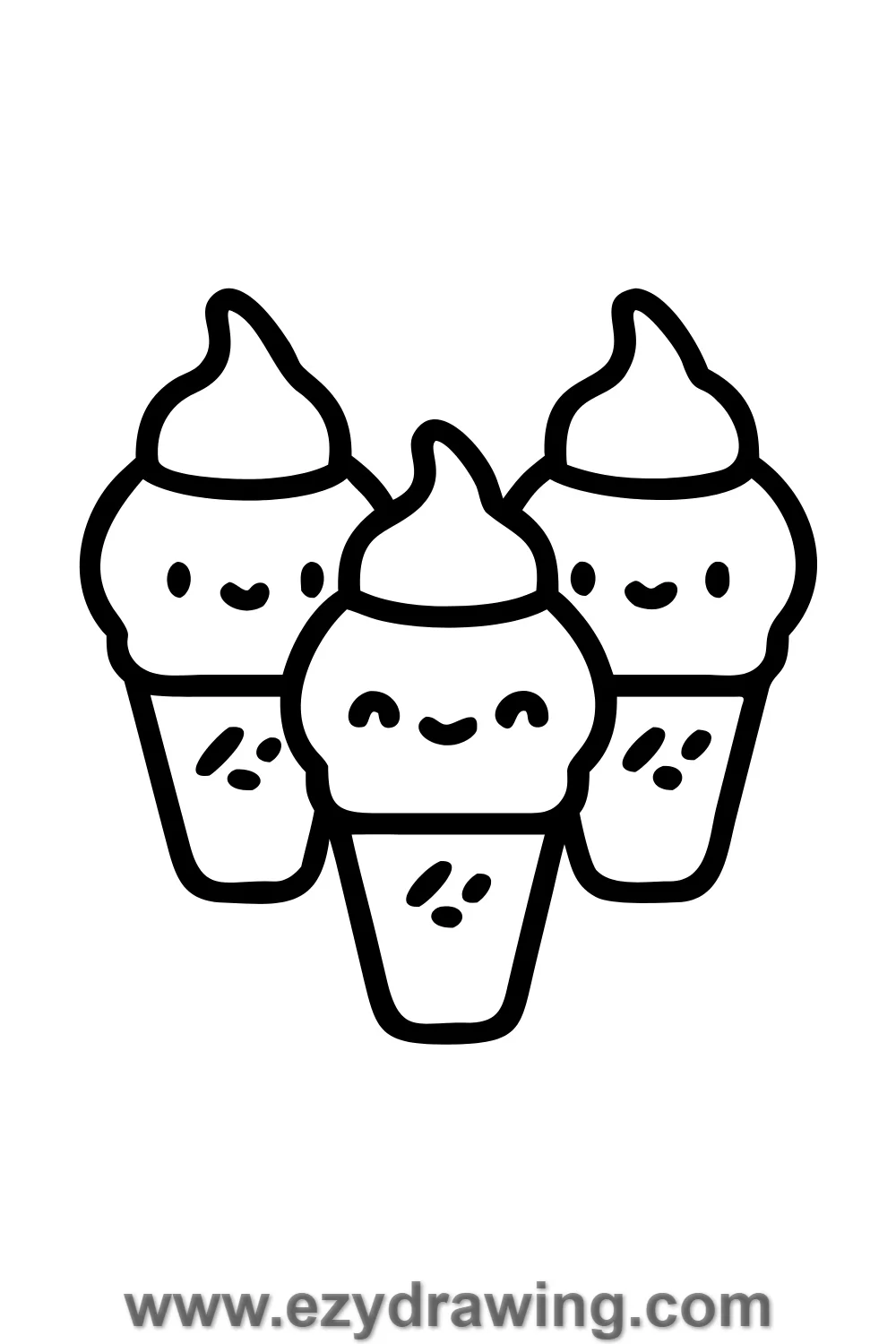 Draw three waffle cones in a row at different heights.