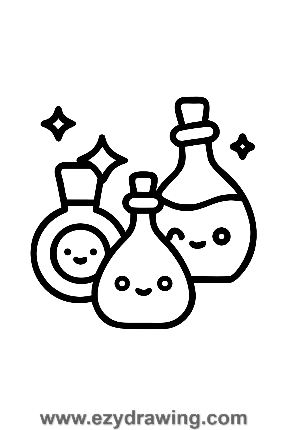 Fill each bottle with simple bubble and sparkle details to suggest glowing liquid.