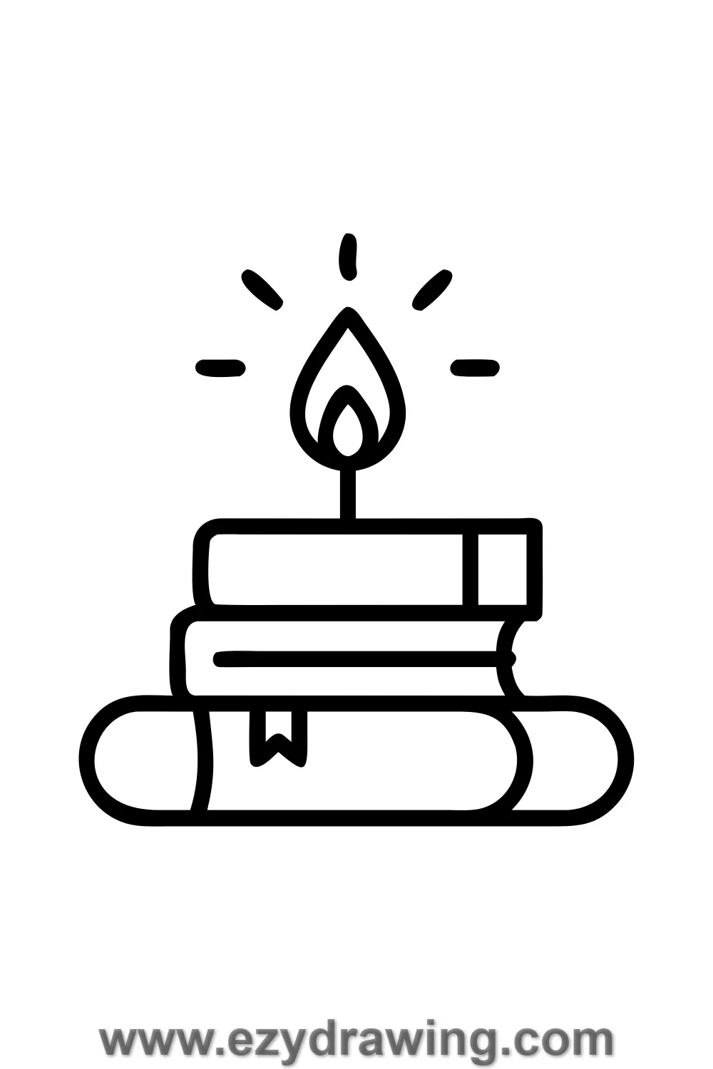Draw three rectangular books stacked on top of each other.