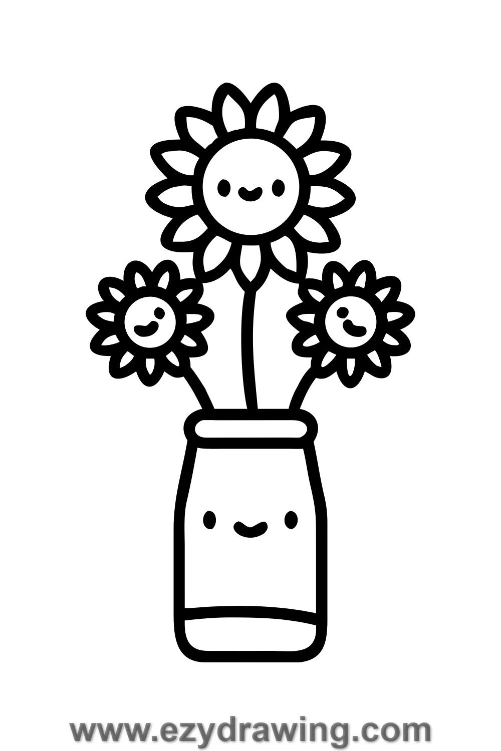 Give each sunflower a cute smiling kawaii face.