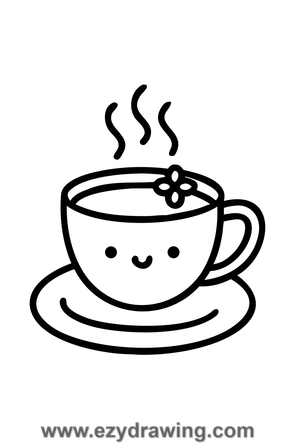 Draw three curling steam wisps rising above the tea.