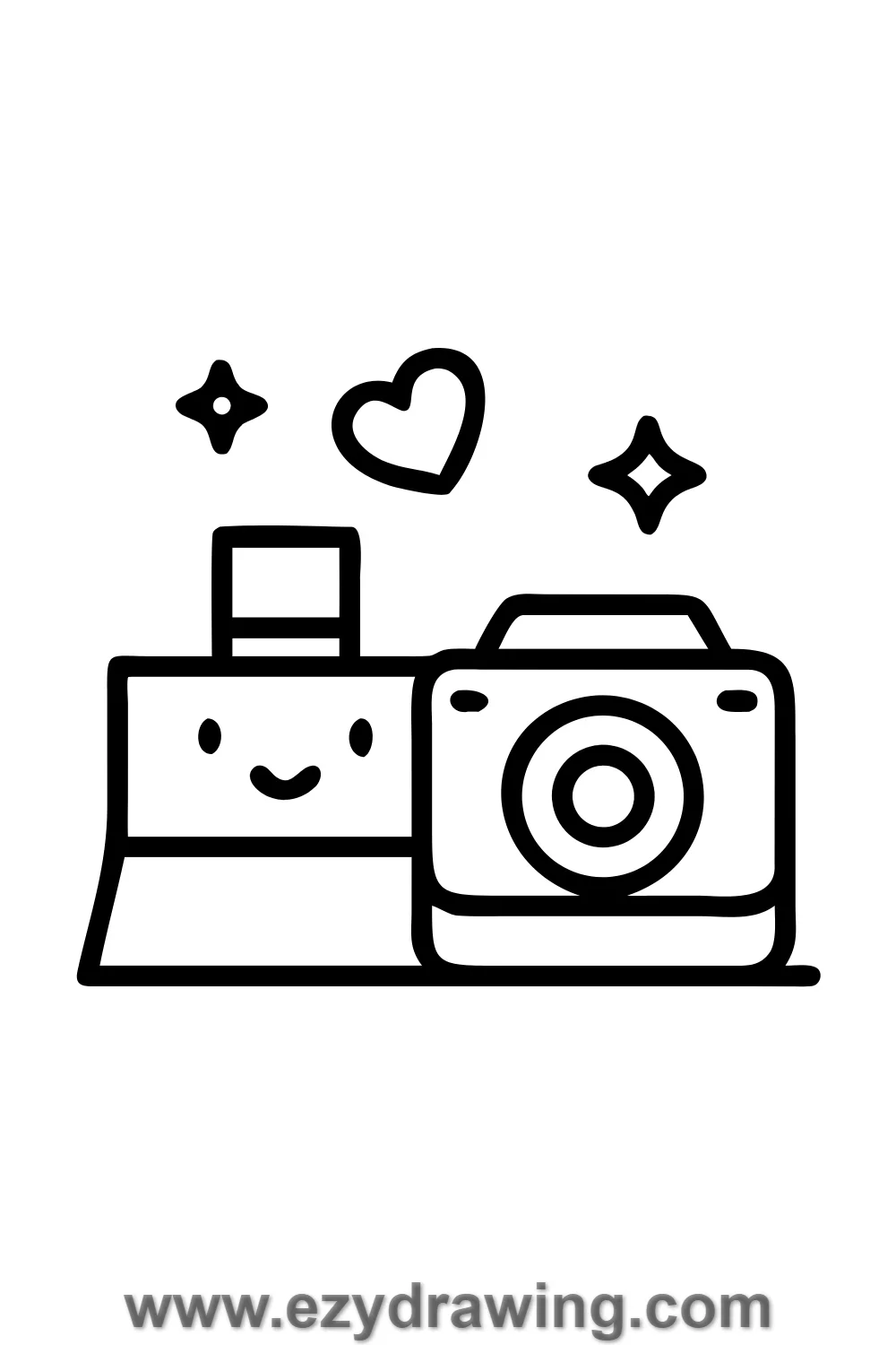 Add small star and heart sticker details on the camera body.