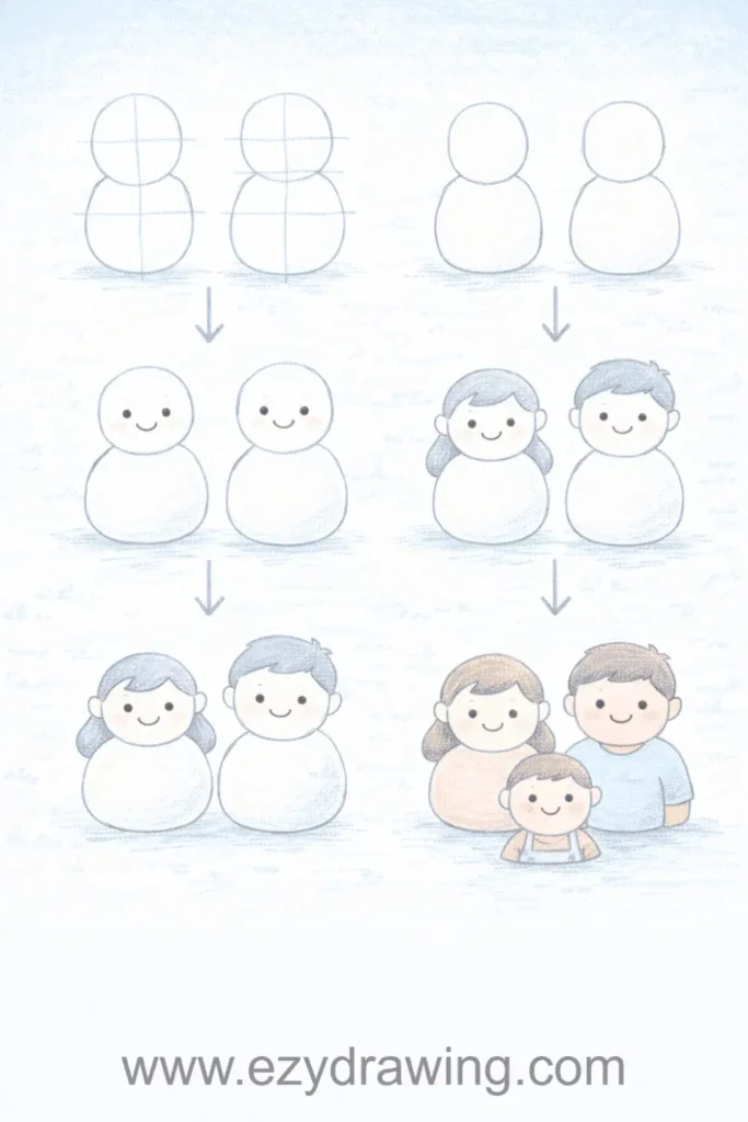 Pro Tip: Take reference photos at eye level with good lighting, then encourage kids to notice unique details like glasses, hairstyles, and smiles that make each family member recognizable.
