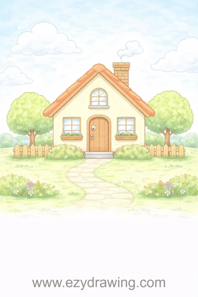Pro Tip: Start by drawing the house from the front view where everything stays flat and straight, then progress to corner views that show two sides and introduce angular perspective challenges.