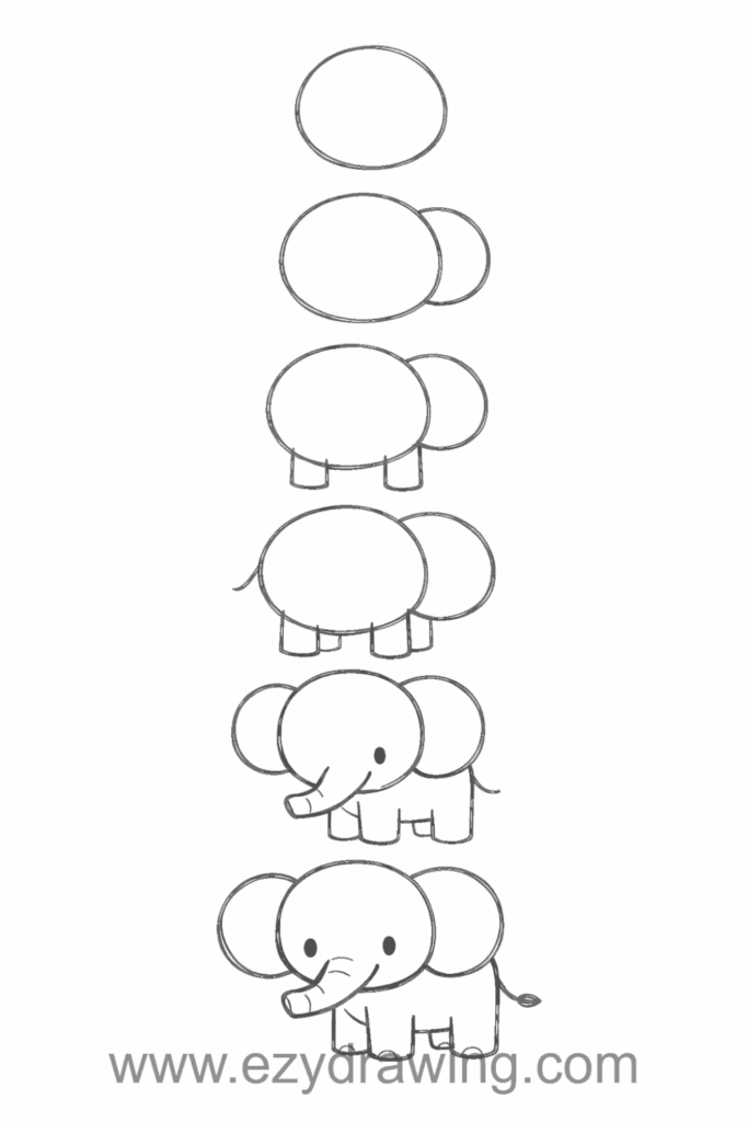 This beginner-friendly approach breaks down the elephant into manageable parts: a large oval for the body, a circle for the head, and cylinders for the legs. Once you’ve mapped out these basic shapes, you can refine the outline and add the trunk, ears, and tail.